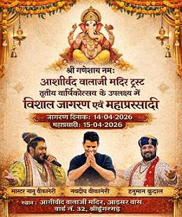 आशीर्वाद वालाजी मंदिर के वार्षिकोत्सव पर होंगे धार्मिक आयोजन