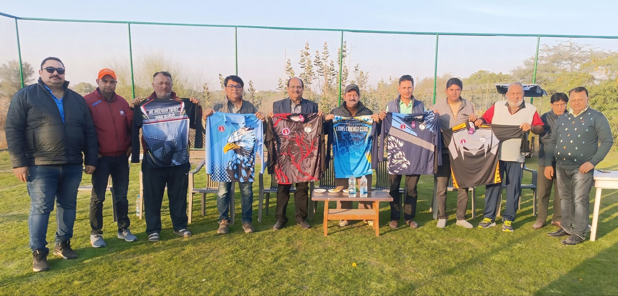 तहलका न्यूज़,बीकानेर ।संजय हर्ष फाउंडेशन और डेजर्ट शाइन क्रिकेट एकेडमी के सयुक्त तत्वाधान में 28 जनवरी से धरणीधर मैदान पर शुरू होने वाली 40+ क्रिकेट लीग की टी शर्ट का लोकार्पण आज सादुल क्लब मैदान पर किया गया।आयोजन से जुड़े गिरिराज पुरोहित ने बताया कि लोकार्पण कार्यक्रम में जिला क्रिकेट संघ के सचिव रतन सिंह सादुल क्लब के सचिव एम पी सिंह और जिला क्रिकेट संघ के अन्य पदाधिकारी ने 40+ क्रिकेट लीग की टी शर्ट का लोकार्पण किया। इस लीग में 6 टीमें भाग ले रही है और ये लीग दूसरी बार आयोजित हो रही है। लोकार्पण कार्यक्रम में प्रकाश चूरा महेन्द्र पुरोहित राजकुमार जोशी विक्रांत राजेंद्र झांब प्रवेश आदि उपस्थित थे।