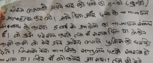पुलिस ने जो सुसाइड नोट जब्त किया है, उसमें लिखा है कि “मैं घर की कुंडी में हूं। पापा और पूर्णिमा को मेरी आत्मा नहीं छोड़ेगी। केवल शरीर जा रहा है। आत्मा बदला जरूर लेगी। उन्होंने मेरे साथ बहुत ग़लत किया है। वो ही मेरी मौत के जिम्मेदार है।