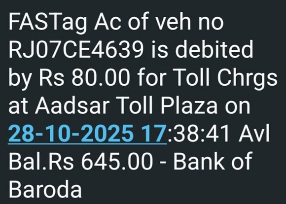 तहलका न्यूज,बीकानेर। शहर के मुरलीधर व्यास कॉलोनी निवासी एक जने के घर खड़ी कार का चालान कट गया। चालान का मैसेज जब गाड़ी मालिक के मोबाइल पर आया तो वह चौक गया। जानकारी के अनुसार मुरलीधर व्यास नगर निवासी ग्राम विकास अधिकारी वीरेन्द्र व्यास की कार आर जे 07 सीई 4639 घर पर खड़ी थी कि शाम को पांच बजकर अडतीस मिनट पर उसके मोबाइल पर मैसेज आया कि आडसर टोल प्लाजा पर फास्ट टेक का 80 रूपये का चालान कट गया। यह देख व्यास हैरान हो गये। उन्होंने बताया इसको लेकर वे आश्चर्य चकित रह गये। जिसके बाद उन्होंने इसकी शिकायत भी दर्ज करवाई है। आपको बता दे कि एक अक्टूबर को भी रानीबाजार निवासी मनीष पंवार के घर खड़ी कार का नो पार्किग ई चालान कट गया था।
