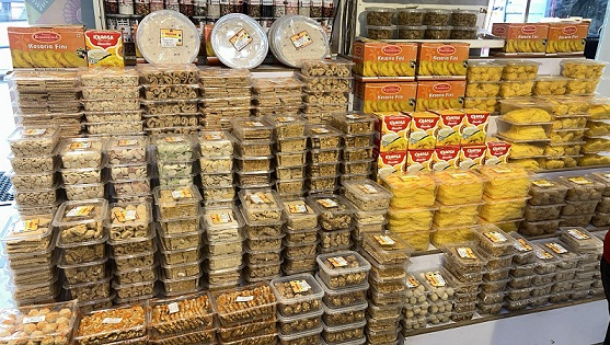 खाओसा में विशेष तौर पर मौसम का मेवा कहलाने वाले गुड़-मूंगफली निर्मित पापड़ी, तिल-गुड़ और देशी से निर्मित गजक, तिल पपड़ी, गुलाब रेवाड़ियां, वहीं केक और पेस्टी की कई तरह की रेंज है।