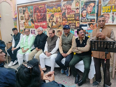 तहलका न्यूज,बीकानेर। अमन कला केंद्र बीकानेर द्वारा राजमाता सुदर्शना कला दीर्घा होटल लाल जी के सामने स्टेशन रोड पर दो दिवसीय ओल्ड फ़िल्म पोस्टर प्रदर्शनी व फिल्म संगीत कार्यक्रम का समापन रविवार को सुदर्शन कला दीर्घा नागरी भंडार में हुआ संस्था के अध्यक्ष एम रफीक कादरी ने बताया कि समापन समारोह रविवार को फिल्म अभिनेता राज कपूर की 101 वीं जयंती जन्मदिन अभिनय सम्राट दिलीप कुमार की जयंती पर पुराने फिल्मी गीतों का रंगारंग कार्यक्रम आयोजित किया गया मुख्य अतिथि अरविन्द मिढ़ा उपाध्यक्ष शहर कांग्रेस कमेटी थे अध्यक्षता संयुक्त रूप से डॉ प्रवीण चतुर्वेदी डॉ भूपेंद्र तिवाड़ी ने की विशिष्ट अतिथि सचिन भाटिया डॉ आनंद बिनानी पत्रकार प्रकाश पुगलिया मो सदीक चौहान सन्तोष तिवाड़ी डॉ देवदत्त दुबे संजीव एरन थे संगीत कार्यक्रम में एम रफीक कादरी सिराजुद्दीन खोखर डॉ हिमांशु दाधीच डॉ योगेश साध डॉ प्रवीण चतुर्वेदी डॉ भूपेंद्र तिवाड़ी संजीव एरन प्रदीप खत्री डॉ नरेश पोपली विनोद सक्सेना अरूण पांडे राधा किशन सोनी इम्तियाज अहमद ने राजकपूर व दिलीप कुमार पर फिल्माए गीत प्रस्तुत कर श्रद्धांजलि अर्पित की संचालन एम रफीक कादरी ने किया
