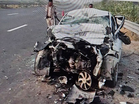 हादसे के बाद कार पलटी,पीछे से टकराई कार पूरी बिखरी