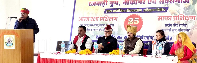 तहलका न्यूज,बीकानेर।आज के समय में महिलाओं और बच्चियों को आत्मरक्षा की बहुत आवश्यकता है,क्योंकि जब तक बच्चियों आत्मरक्षा के क्षेत्र में परांगत नहीं होंगी,तब तक उनको घर बाहर निकलने में संकोच रहेगा एवं हमारी राजस्थान की पारंपरिक वेशभुषा साफा भी हरेक बांधना आना चाहिए हमारी धरोहर सम्मान का प्रतीक है।यह उद्गार आज क्षत्रिय सभा एवं ट्रस्ट बीकानेर संभाग द्वारा आयोजित रजवाड़ी ग्रुप एवं मानव अधिकार सामाजिक कल्याण संघ द्वारा संचालित आत्म रक्षा एवं साफा प्रशिक्षण शिविर के शुभारंभ के अवसर पर गौरव सेनानी एसोसिएशन बीकाणा के अध्यक्ष कर्नल हेम सिंह शेखावत ने व्यक्त किये।कार्यक्रम के प्रारंभ में सरस्वती वंदना कर अतिथियों का माल्यार्पण कर स्वागत किया गया।इसके पश्चात रजवाड़ी ग्रुप के संदीप सिंह राठौड़ ने साफा के बारे में,उसके महत्व पर प्रकाश डालते हुए इस विधा को सीखने के लिए सभी से आग्रह किया।मानव अधिकार सामाजिक कल्याण संघ की संस्थापिका उषा कंवर ने आत्मरक्षा के लिए उपस्थित बच्चियों और मातृशक्ति का आह्वान करते हुए बताया कि शिविर में आपको विभिन्न प्रकार के आत्मरक्षा के गुर सीखायें जाएंगे जो भविष्य में आपके लिए बहुत कारगर सिद्ध होंगे।क्षत्रिय सभा एवं ट्रस्ट के अध्यक्ष करण प्रताप सिंह सिसोदिया ने सभी उपस्थित प्रशिक्षणार्थियों एवं उनके साथ आए उनके परिवारजन को संबोधित करते हुए उनका स्वागत किया एवं शिविर के महत्व पर प्रकाश डाला। आत्मरक्षा प्रशिक्षण के लिए प्रशिक्षक के रूप में जोधपुर से पधारी मंजू राठौर ने विभिन्न प्रकार के आत्मरक्षा के पहलुओं पर प्रकाश डालते हुए बताया कि यदि आप इस शिविर में नियमित आकर इसका लाभ उठाती हैं तो आपको निसंदेह है इसका लाभ प्राप्त होगा और आप में स्वाभिमान एवं आत्मसम्मान की झलक देखने को मिलेगी।प्रवक्ता प्रदीप सिंह चौहान ने कार्यक्रम का संचालन करते हुए बताया की अल्प समय में इस शिविर में बच्चों और युवाओं का रुचि लेकर उपस्थित होना,इस बात का परिचायक है कि यह शिविर उनके लिए निसंदेह लाभदायक सिद्ध होगा।उन्होंने बताया कि शिविर के शुभारंभ के अवसर पर क्षत्रिय सभा से गजे सिंह देवड़ा,सरपंच,वीरेंद्र सिंह नरूका गिरधारी सिंह खिंदासर,स्वरूप सिंह राठौड़ ,रचना मोहता,भगवती स्वामी,संतोष डेलू, आशीष जैन,प्रेम धांधल,सुरेंद्र सिंह जोधपुर,रवि गहलोत इत्यादि उपस्थित थे ।